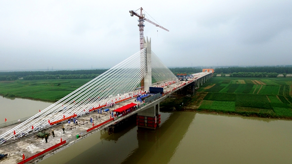 8月22日上午9時58分,安徽省內跨度最大的公路矮塔斜拉橋——濟祁高速淮河特大橋主橋順利實現合龍,為實現年底建成通車奠定了堅實基礎。