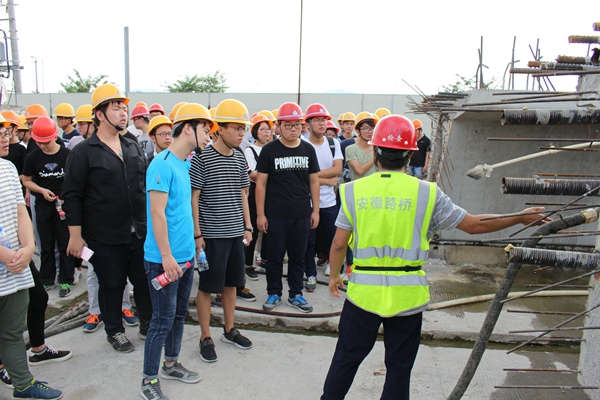 現(xiàn)場負責(zé)人向師生們介紹了施工場地建設(shè)的基本情況,并結(jié)合同學(xué)們的專業(yè)仔細講解了施工生產(chǎn)過程容易產(chǎn)生的安全問題以及安全生產(chǎn)注意事項。學(xué)生們邊聽邊記,對一些不懂的問題,積極提問。現(xiàn)場負責(zé)人耐心而又不失趣味性的一一舉例解惑。