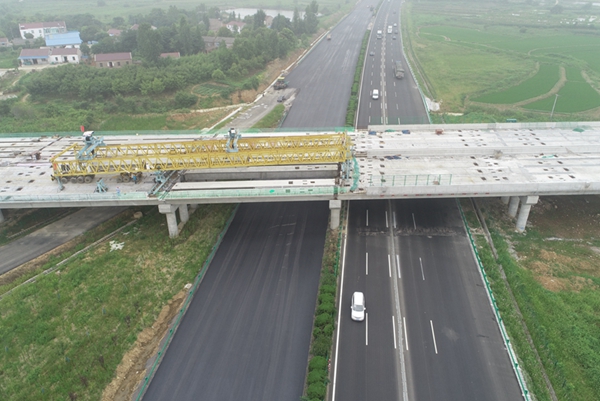 上跨G3京臺高速分離立交橋為涉高速施工,所跨路段日均車流量達五萬多輛,并與正在進行的高速改擴建瀝青攤鋪交叉施工,需要在規定的半幅封閉時間內完成上跨梁板架設任務,施工環境復雜,組織難度較大。經過多次專家論證,項目不斷優化施工方案,并堅持責任到人,狠抓時間節點,有效克服了各項困難,梁板架設有序推進,順利實現了上跨高速橋的順利合龍。