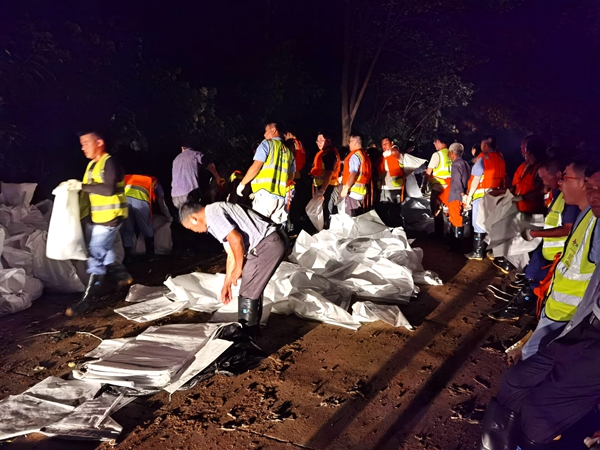 在搶險救援一線,黨員先鋒隊、青年突擊隊的旗幟高高飄揚,路面公司領導班子帶隊奮戰一線,揮鍬挖土,裝袋筑堤。經過連續24小時的奮戰,最終筑起一道“安全堤壩”。