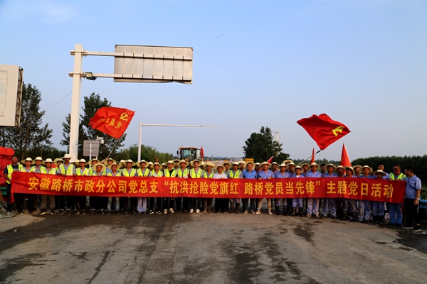 在這場抗洪搶險突擊中,市政分公司黨總支現(xiàn)場組織開展了一次主題為“抗洪搶險黨旗紅 路橋黨員當先鋒”的黨日活動,號召所屬黨支部和廣大黨員堅守陣地,把黨組織的戰(zhàn)斗堡壘建在抗洪搶險的最前沿。