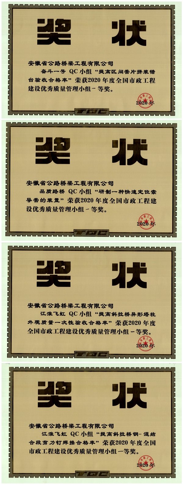 此次全國(guó)市政工程建設(shè)優(yōu)秀QC小組活動(dòng)成果發(fā)布會(huì),共有來自25個(gè)省、市、自治區(qū)的近770支隊(duì)伍參加。通過兩天的激烈角逐,市政分公司申報(bào)的《提高區(qū)間管片拼裝錯(cuò)臺(tái)驗(yàn)收合格率》《研制一種快速定位索導(dǎo)管的裝置》《提高特大斜拉橋異型高塔柱外觀質(zhì)量一次性驗(yàn)收合格率》《提高斜拉橋鋼-混結(jié)合段剪力釘焊接合格率》四項(xiàng)QC成果全部獲得一等獎(jiǎng)。
