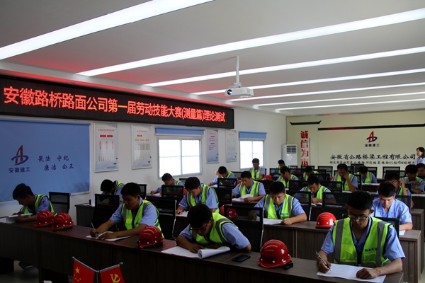 本屆勞動技能大賽由35名技術人員參加,比賽包括測量和試驗兩項內容,采取理論測試和實際操作相結合的方式進行。比賽中,參賽選手充分展現出自己的專業素養,冷靜答題、沉著應對,精準測量、規范操作。經過一天緊張激烈的比拼,明巢高速等代表隊榮獲測量比賽前三名,舒城三里河項目等代表隊獲得試驗比賽前三名。