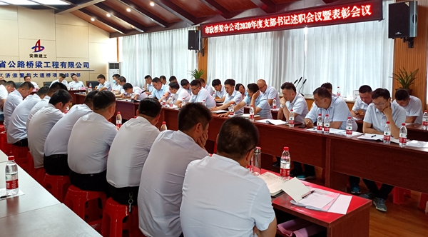 5月29日,市政分公司2020年度黨支部書記述職評議暨表彰會議在引江濟淮繁華大道橋項目部召開,分公司領(lǐng)導(dǎo)班子成員、分公司后勤部門負責人及所屬各項目支部負責人、項目經(jīng)理和部分職工代表80余人參加會議。
