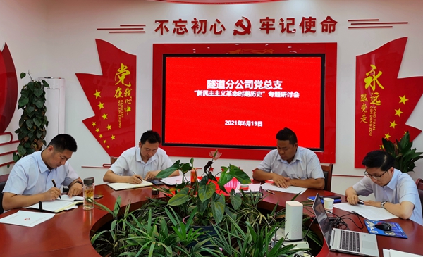 6月19日上午,隧道分公司黨總支圍繞習近平總書記在黨史學習教育動員大會上的重要講話精神和“新民主主義革命時期歷史”兩個專題開展學習研討。分公司黨總支書記、總經理王秋華主持會議。