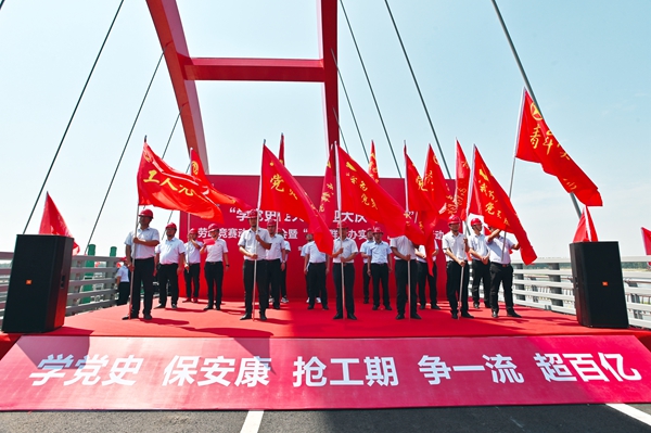 6月24日,道路分公司“學(xué)黨史促大干,迎大慶謀發(fā)展”勞動(dòng)競(jìng)賽動(dòng)員部署會(huì)暨“我為群眾辦實(shí)事”服務(wù)提升活動(dòng)在固蚌02標(biāo)澮河大橋現(xiàn)場(chǎng)和渡江戰(zhàn)役總前委孫家圩子舊址成功舉辦。分公司領(lǐng)導(dǎo)班子、后勤各部門(mén)負(fù)責(zé)人、各項(xiàng)目經(jīng)理、黨支部書(shū)記、青年代表及工人代表共計(jì)70余人參加。