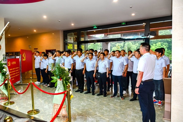 隨后,在講解員的帶領下,大家參觀了紀念館,面對一件件革命文物、一份份珍貴史料、一個個紅色故事,親身感受革命先輩的光輝歷史。王秋華結合新民主主義革命時期歷史,向各位黨員寄語并提出希望。他強調,要充分利用紅色資源,進一步教育引導黨員從百年黨史中汲取智慧,全力激發“十四五”開好局、起好步的強大精神動力,切實以昂揚姿態開啟分公司發展新篇章,以優異成績迎接建黨100周年。