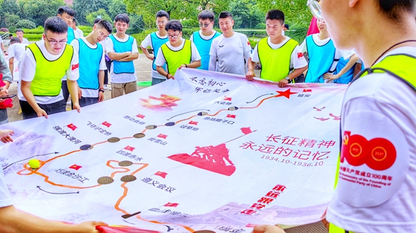 在新四軍江北指揮部紀念館,全員參觀了館藏的200余幅珍貴歷史照片、圖表和文獻資料,認真了解了新四軍組建、發展和壯大的歷程,切實的感受革命先烈們為了新中國的勝利拋頭顱灑熱血的大無畏精神。隨后,大家共同完成了《歌唱祖國》合唱、“長征精神”、“雷區取水”、填寫入職寄語和觀看愛國主義教育片《建黨偉業》等一系列團建活動,在培養新員工團隊協作能力的同時,進一步加強了紅色教育。