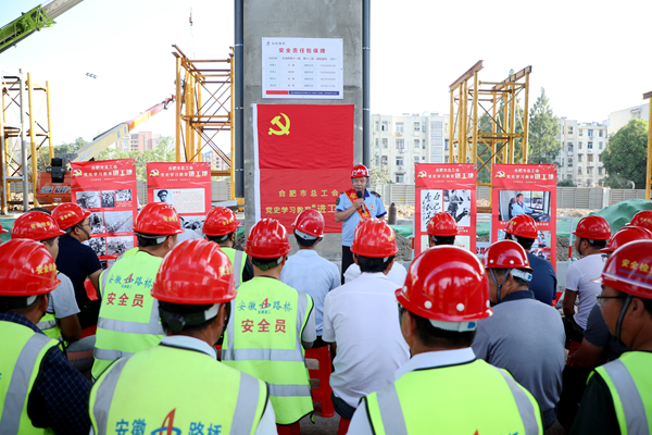 7月21日下午,合肥市總工會到暢通二環(西南環)項目舉辦黨史學習教育“進工地”活動,全國五一勞動獎章獲得者夏力為30多名工友作主題宣講。