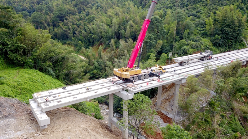 9月11日下午,吉康高速改擴建C1標楊公山大橋最后一片預制梁板的架設成功,為下一步主線交通導改及全線通車打下了基礎。