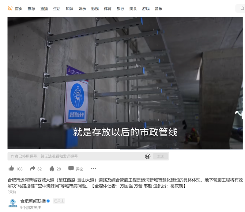 【名媒聚焦】合肥新聞聯播報道公司承建的西城大道及綜合管廊項目完工
