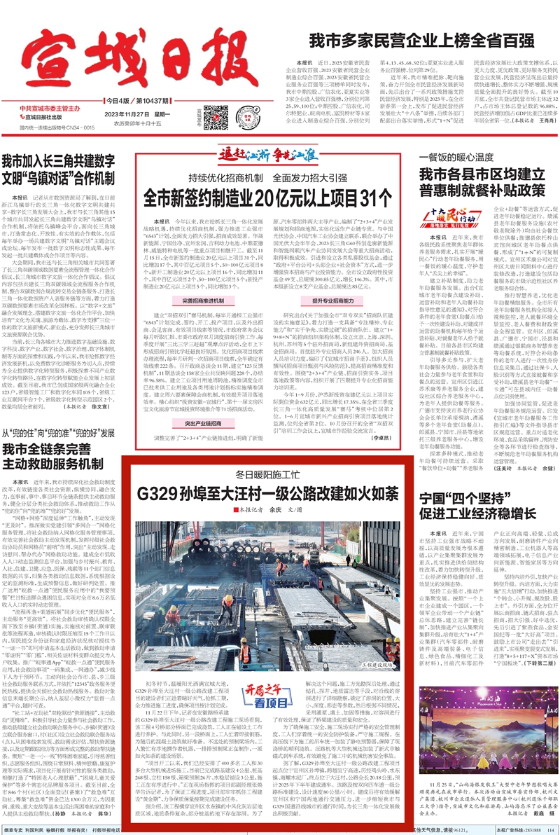 【名媒聚焦】宣城日?qǐng)?bào):冬日暖陽施工忙 G329孫埠至大汪村一級(jí)公路改建如火如荼