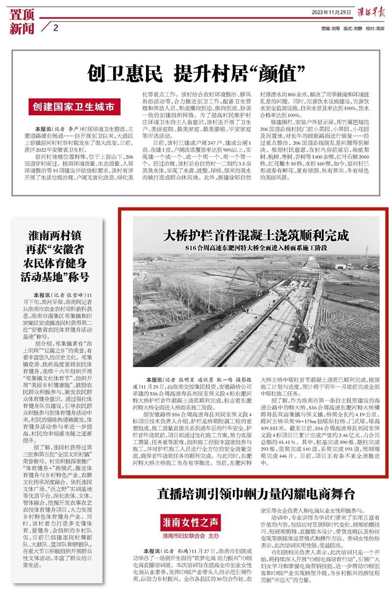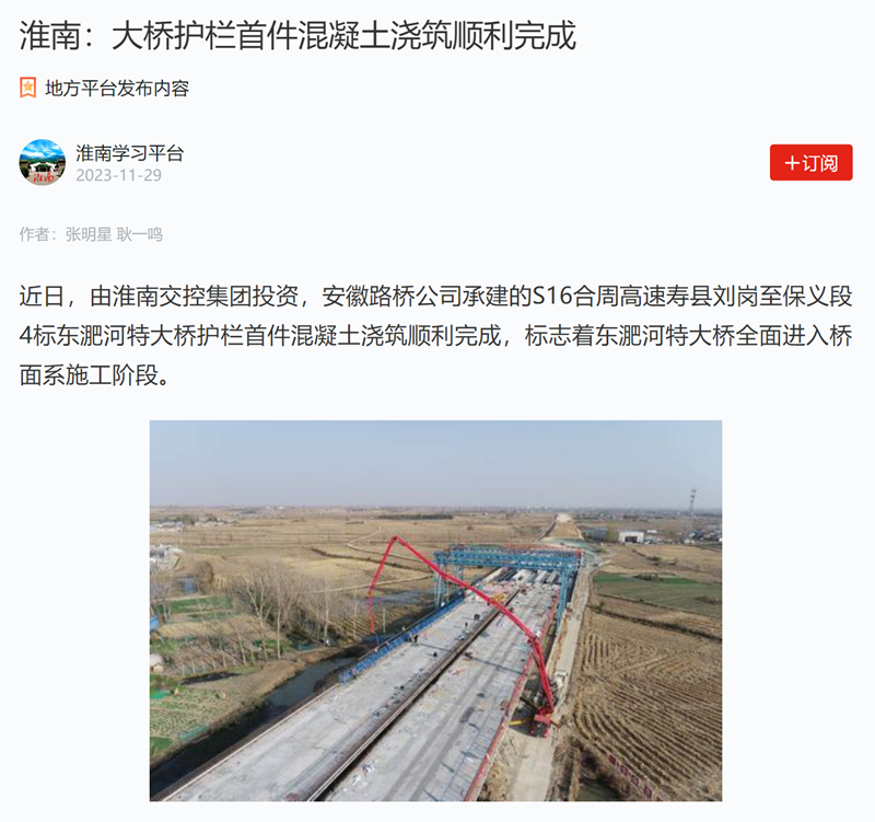 【名媒聚焦】學習強國、淮河早報、掌上淮南:S16合周高速東淝河特大橋全面進入橋面系施工階段