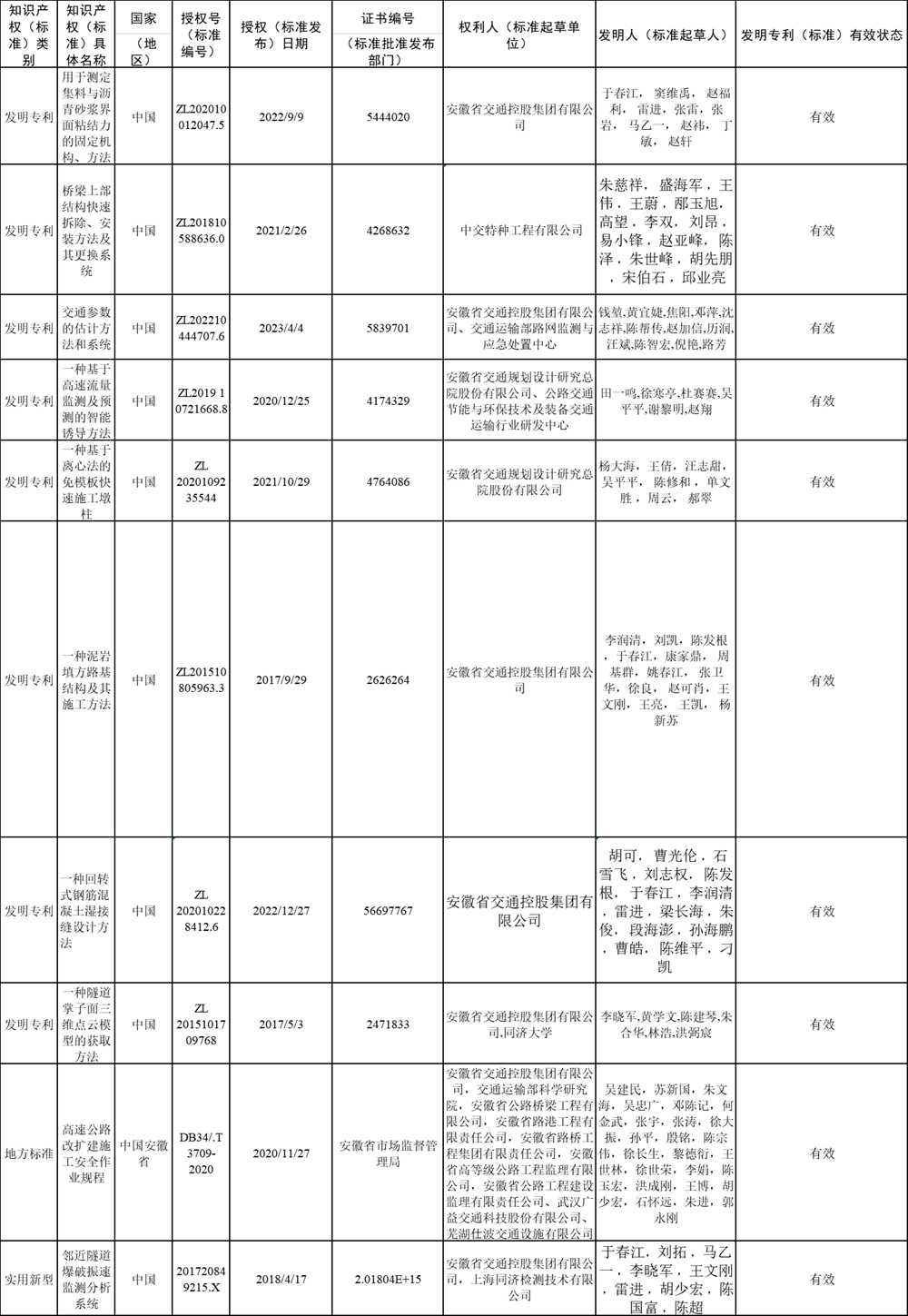 安徽省交通控股集團有限公司、安徽省交通規劃設計研究總院股份有限公司、安徽交控工程集團有限公司、安徽省公路橋梁工程有限公司、交通運輸部科學研究院、安徽巢湖路橋建設集團有限公司、中交特種工程有限公司