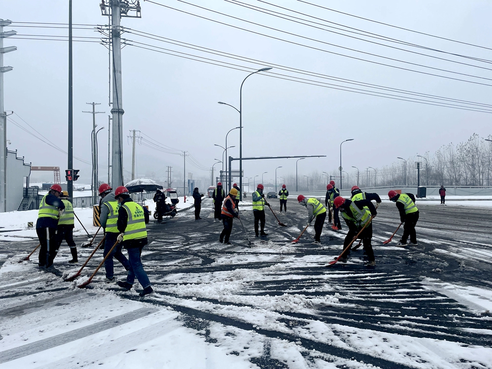 G312合六路(新橋大道-侯店路)工程二標項目部組織員工開展鏟除積雪志愿服務活動