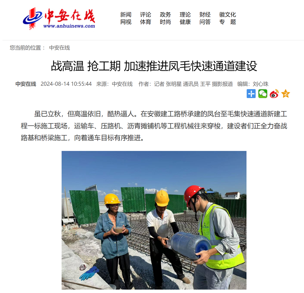 【名媒聚焦】中安在線、淮河早報:戰高溫 搶工期 加速推進鳳毛快速通道建設