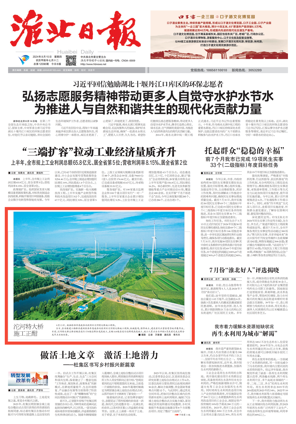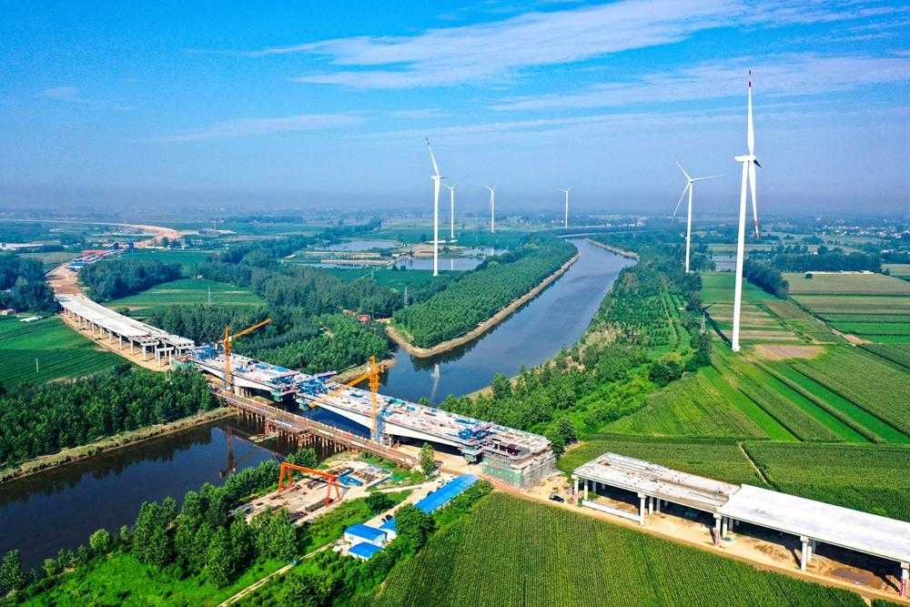 【名媒聚焦】淮北日報:徐淮阜高速淮北段沱河特大橋施工正酣