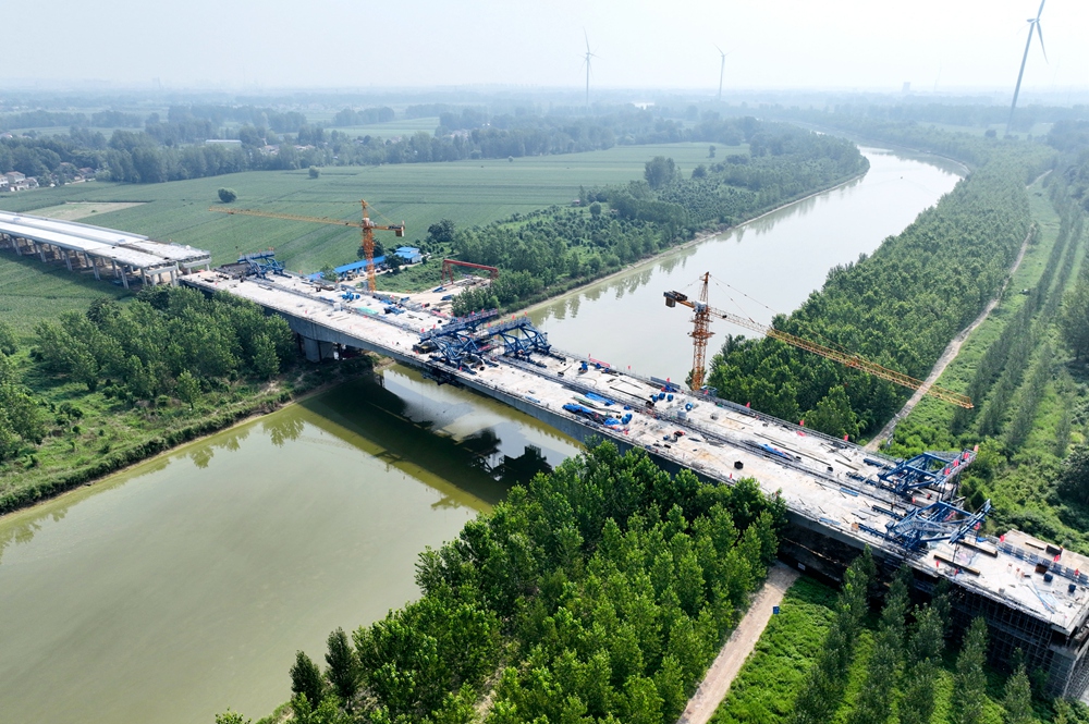 沱河特大橋是徐淮阜高速淮北段項目重點控制性工程之一,其主橋自去年11月初開始施工,于今年8月21日晚11時許實現右幅合龍。目前,項目施工方安徽建工路橋正全力沖刺9月底前實現全橋合龍的目標。