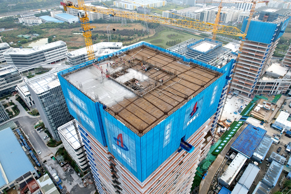 自二期建設(shè)以來,項目集中優(yōu)勢資源高效推進主體結(jié)構(gòu)施工。此次完成封頂?shù)腁4#樓單體,建筑面積約37000平方米,地上建筑22層,建筑高度95.3米。建成后將成為集高端企業(yè)總部、星級酒店、辦公樓、商業(yè)會議中心等功能為一體的現(xiàn)代化辦公聚合體。