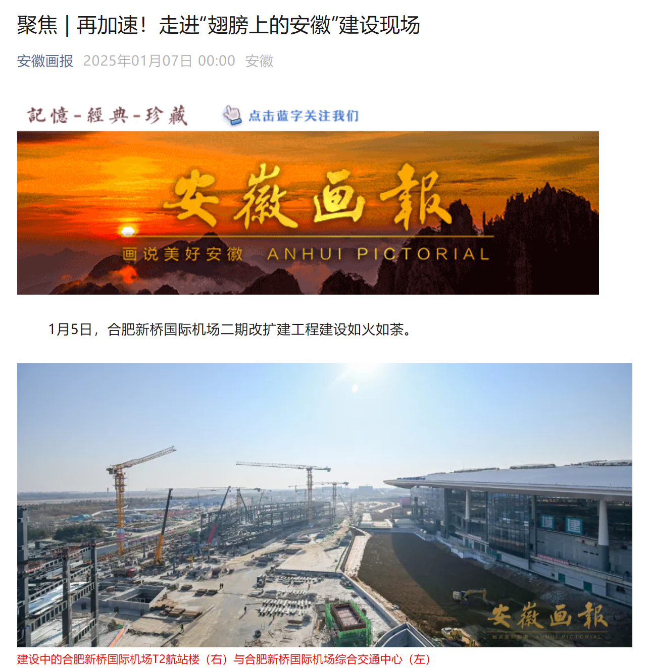 【名媒聚焦】安徽日報、合肥新聞聯播等省市主流媒體關注報道合肥新橋國際機場綜合交通中心項目
