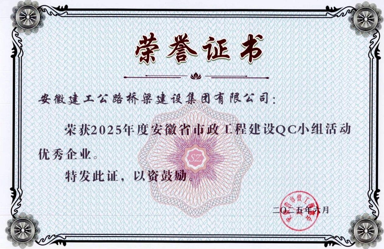 卓越創(chuàng)新 | 公司榮獲“2025年度安徽省市政工程建設(shè)QC小組活動(dòng)優(yōu)秀企業(yè)”稱(chēng)號(hào)