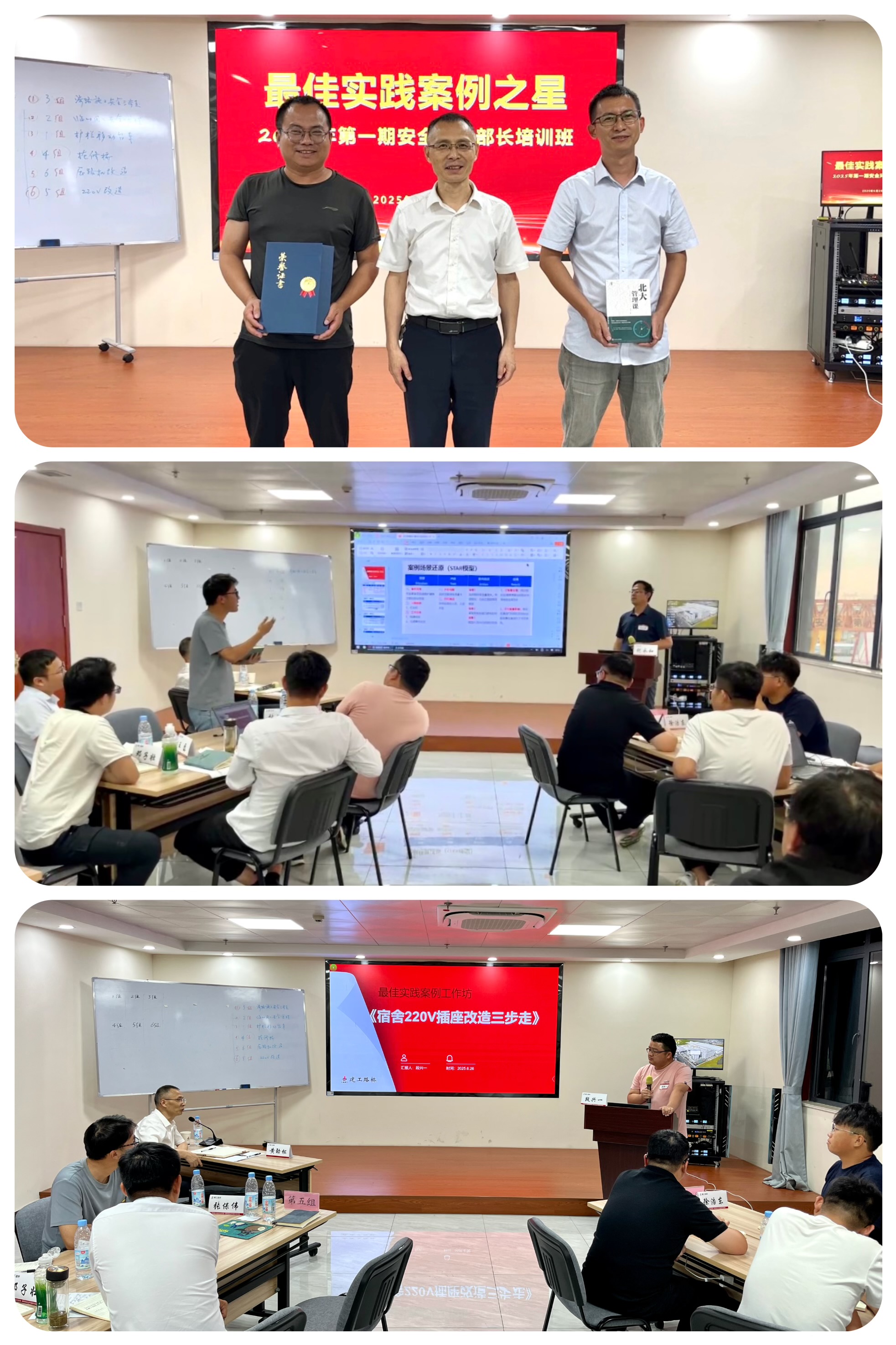 本次培訓班結合全國安全生產月活動,聚焦“人人講安全、個個會應急”主題,培訓課程涵蓋“應急力強化、執行力鍛造、思考力提升”等維度,具體內容包括突發應急處置、班組安全管理、特種設備和場內機械事故預防、特殊工種證件的真偽分辨、項目行為安全管理與風險防控廉潔風險防范、法律風險防范以及金字塔原理課程等。