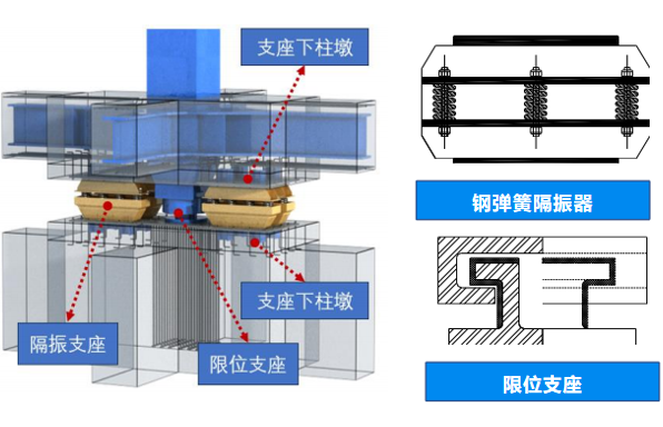 鋼彈簧隔振器結合限位支座隔振技術在合肥新橋國際機場綜合交通中心項目驚艷亮相。為應對高鐵、地鐵振動影響,于地下室特定位置設置隔振層,采用國內先進的3Hz鋼彈簧隔振器結合限位支座,隔振效果卓越,性能穩定可靠,為旅客營造靜謐舒適環境。
