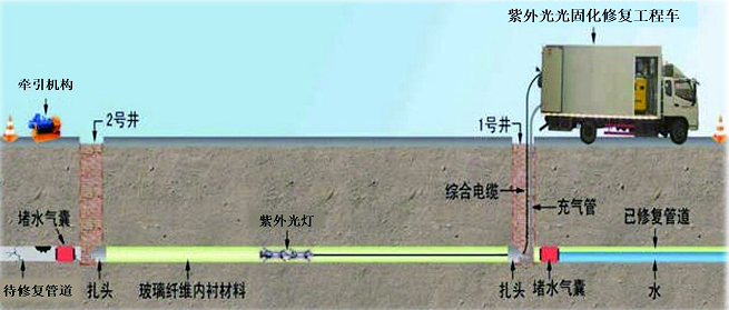 紫外光固化管道修復技術為城市雨污水管網改造帶來全新方案探索。將特制軟管材料浸漬光固化樹脂后拉入舊管道,在紫外光照射下迅速固化形成高強度內襯管,無需開挖路面,極大減少施工擾民與環境破壞。在新站區排水管網排查整治完善工程一期-1標順利實現了安徽省內最大管徑管道紫外光固化修復。