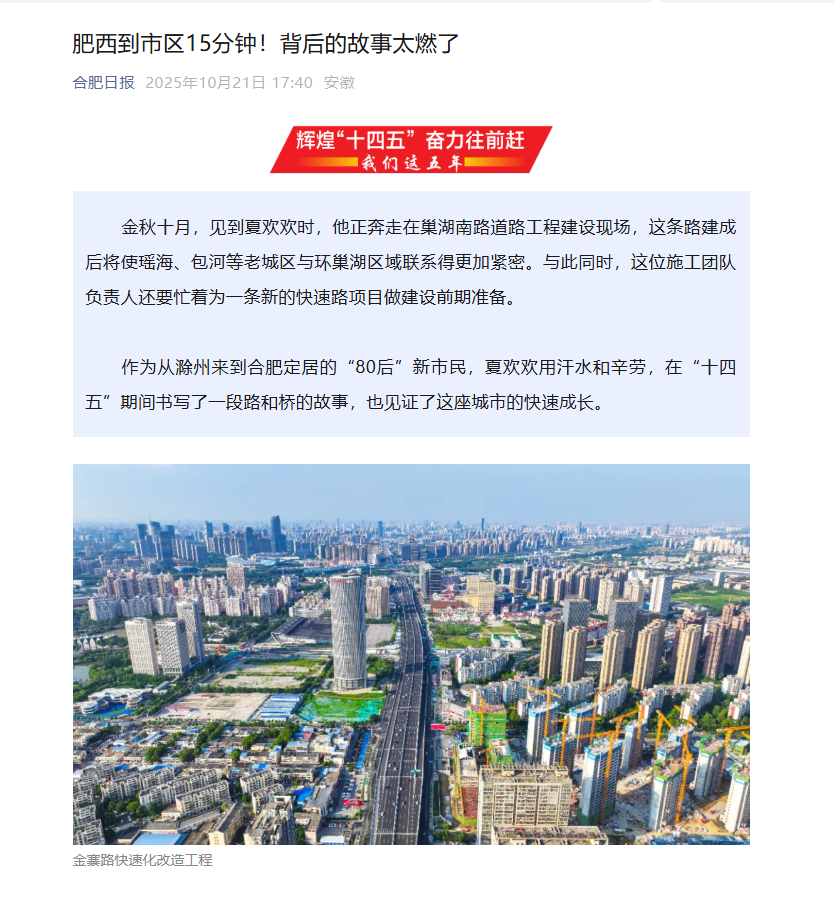 【名媒聚焦】合肥日報:輝煌“十四五” 奮力往前趕系列報道——肥西到市區15分鐘!背后的故事太燃了