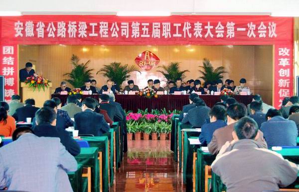 8:45,在莊嚴(yán)的國歌聲中,第五屆職工代表大會第一次會議正式開幕。公司總經(jīng)理汪衛(wèi)東向大會作了題為《統(tǒng)一思想 堅定信心 為實現(xiàn)安徽路橋的新崛起而奮斗》的工作報告。汪總在報告中指出,這次會議,是在當(dāng)前國家擴大內(nèi)需、加大基礎(chǔ)設(shè)施建設(shè)的特殊環(huán)境下,是在集團公司對當(dāng)前經(jīng)濟形勢科學(xué)研判和正確部署下,是在路橋公司謀求新崛起的關(guān)鍵時刻召開的一次十分重要的會議。