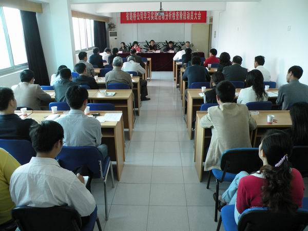 5月21日上午8時30分,公司在四樓會議室召開了學習實踐活動分析檢查階段動員大會。公司黨委書記、學習實踐活動領導小組組長陳光磊作動員講話,公司總經理、學習實踐活動領導小組副組長汪衛東就分析檢查階段工作作了具體部署和安排,集團公司學習實踐科學發展觀活動第二指導督查組組長李鵬飛同志、副組長潘琳同志到會指導,李鵬飛發表重要講話。會議由公司總工程師、學習實踐活動領導小組副組長彭申凱主持。公司領導班子成員、公司所屬各黨支部負責人、機關全體黨員及各單位、各項目的黨員代表50余人參加了會議。