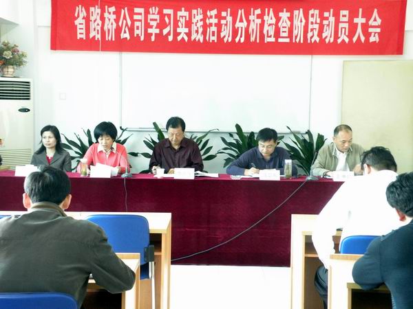 會上,陳書記在動員講話里首先全面回顧總結了學習實踐活動第一階段的情況。陳書記從四個方面總結了第一階段的學習調研情況:一、認真籌備,積極動員。公司黨委迅速行動,及時召開了黨委會議,成立了領導小組及其辦公室,研究制定了《安徽省路橋公司開展深入學習實踐科學發展觀活動實施方案》等指導性文件,并于3月24日上午,召開了學習實踐科學發展觀活動動員大會。二、創新方式、強化學習。學習實踐活動動員大會后,公司學習實踐活動領導小組迅速組織實施第一階段的學習實踐活動。一是組織所屬各支部書記就如何組織開展學習實踐科學發展觀活動進行培訓;二是以求真務實的作風推動學習實踐活動深入開展,及時在網上開辟了學習實踐科學發展觀專欄,并利用公司內刊《路橋信息》廣為宣傳,為實踐活動營造良好的輿論氛圍;三是將《科學發展觀重要論述摘編》、《毛澤東、鄧小平、 江澤民、論科學發展》發至每位黨員手上;四是強化學習,堅持學習規定內容與自選內容相結合、集中學習與自學相結合、學習理論與指導實踐相結合,正確處理工學矛盾,創新學習方式,確保學習質量。三、深入調研、解放思想。公司黨委把開展調研作為掌握實情、發現問題、破解難題的重要基礎,把解放思想大討論作為對學習成果的檢驗。一是集思廣益,確定調研課題,領導班子在廣泛征求意見的基礎上,確定了9個調研課題和課題組成員;二是深入基層,廣泛調研,公司領導班子成員深入到聯系點開展調研,問計于基層,問計于員工,廣泛聽取員工對公司科學發展的意見和建議,進一步摸清了問題,理清了思路。四、突出實踐特色,聯系實際到位。在抓好學習的同時,堅持理論聯系實踐,把學習實踐活動和生產經營緊密結合起來。公司領導班子分別就外協隊伍的管理與控制、人力資源管理、項目質量管理、市政市場戰略定位、項目財務管理、經營管理等方面的問題進行了深入調研,并提出了可行的解決方案,形成了有質量的調研報告。各支部、各項目黨小組都始終把學習實踐活動同生產經營和企業管理緊密聯系起來,做到相互促進。陳書記指出通過學習實踐活動的開展,公司領導謀劃科學發展的決心、信心都更加堅定,公司上下的凝聚力、干勁大大增強,生產經營形勢良好。截至到目前,公司承攬工程6.88億,同比增長26.7%。同時陳書記還指出了第一階段學習實踐活動中存在的一些問題。接著陳書記對如何做好分析檢查階段的工作提了兩點意見。一、要認真抓好三個環節。陳書記對召開領導班子專題民主生活會、形成領導班子分析檢查報告、組織群眾評議三個環節提出了具體要求;二、要始終堅持六個貫穿始終,一要把活動主題貫穿始終,二要把理論學習貫穿始終,三要把實踐特色貫穿始終,四要把邊查邊改貫穿始終,五要把嚴格要求貫穿始終,六要把“兩不誤、兩促進”貫穿始終。