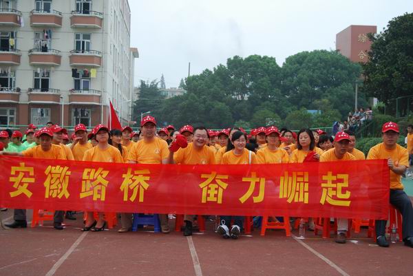 來自21個單位的近500員工組成了不同色彩的10個方隊參加了開幕式。公司由總經理汪衛東、黨委書記陳光磊帶隊,組成約100人的方隊舉著“安徽路橋 奮力崛起”的橫幅,高喊“安徽路橋 搶抓機遇 實現跨越 科學發展 共促和諧”的口號,向集團領導和兄弟單位展示了公司積極向上的風采。