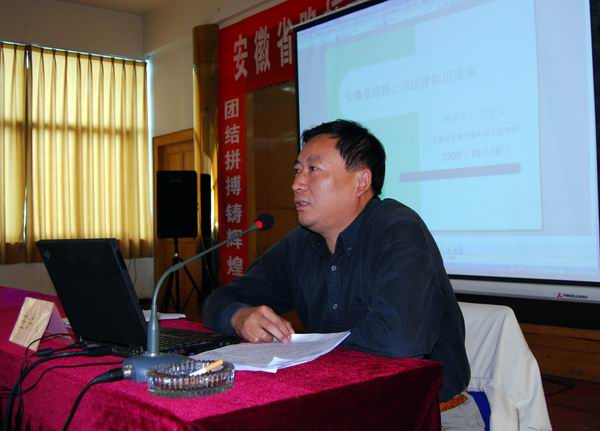 安徽首安律師事務所主任管守安從合同簽訂主體資格、合同效力、合同履行、違約責任常識、合同管理中存在問題的主要對策給大家進行了全面剖析和解釋。陳健宏律師則根據多年代理公司的訴訟案件,著重就典型案例的經驗和教訓等方面進行了分析講解。