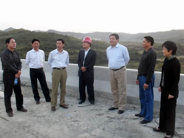 22日,績黃高速02標項目橫幅高掛、彩旗飄飄,項目部內環境干凈整潔,施工現場忙碌有序。“熱烈祝賀安徽建工集團入選全球最大225強國際承包商 ”、“熱烈祝賀安徽建工集團榮膺2009中國企業500強”兩條醒目的橫幅給項目部增添一種莊重喜慶的氣氛。下午5時許,張海平書記一行一到項目部,就直接來到施工現場,看望慰問一線施工人員,察看現場施工情況。項目經理張慶書匯報了項目工程進展情況,當聽到我部工程量現已完成88%,進度在全線處于領先地位時,張書記露出了欣慰的笑容。同時績溪縣指揮部領導對我部工程也做了充分肯定。張書記聽后講到,“首先要感謝縣委縣政府給我們提供了一個良好的地方環境,這些成績的取得離不開地方的支持。希望項目部趁勢而上、繼續努力,在進度、質量、安全以及文明施工方面做好做強,始終處于‘領頭羊’的位置。”
