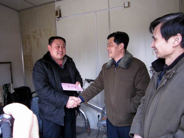 集團(tuán)公司副總經(jīng)理戴良軍一行慰問公司困難職工 發(fā)布時間:2010年02月04日 來源:工會 發(fā)布人: 作者:胡運春 瀏覽:5078次 2月3日,在這新春佳節(jié)來臨之際,集團(tuán)公司副總經(jīng)理戴良軍、黨委工作部主任吳曉伍、人力資源部副經(jīng)理朱金蓉一行在公司黨委書記陳光磊等同志的陪同下,先后對四分公司特困職工許來柱和二分公司困難黨員施靜進(jìn)行了走訪慰問,給他們送去了慰問金,并送上新春的祝福,把黨組織的關(guān)懷、企業(yè)的溫暖送到了他們的家中。