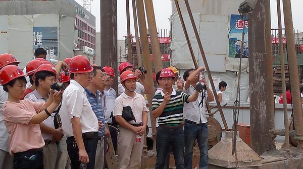 觀摩團一行60多人,首先來到項目部會議室。項目總工楊建民利用投影儀,系統(tǒng)介紹了地下連續(xù)墻的發(fā)展歷史、地下連續(xù)墻在K標的應用情況以及施工工藝等情況。楊總工介紹道:“本項目地下連續(xù)墻是鳳陽路地鐵的重要組成部分,該施工方法在安徽省內系首次使用”。