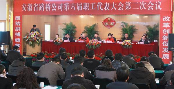 上午9:00,全體代表起立,大會在激昂雄壯的國歌聲中正式開始。會上,公司總經理汪衛東作了題為《調整市場格局轉變發展方式 優化管理體系 提升發展質量 為實現公司2012年發展再上新臺階而努力奮斗》的工作報告。汪總在報告中回顧了公司2011年主要工作。2011,在集團公司正確領導和大力支持下,公司緊緊圍繞科學發展的主題,有效應對各種危機與挑戰,扎實推進各項管理工作,繼續保持著平穩較快的發展,圓滿完成了集團公司下達的各項任務。主要作了六個方面工作:一是積極拓展市場,經營工作取得突破;二是科學部署生產,項目建設進展順利;三是落實各項舉措,戰略規劃全面實施;四是健全管理體系,管理水平持續提高;五是引進培養人才,隊伍素質整體提升;六是構建和諧企業,黨建工作深入推進。報告指出,過去的一年,面對錯綜復雜的宏觀環境,公司沉著應對各種不利因素,在挑戰和考驗中前進,保持著良好的發展態勢,這些成績來之不易,展示了公司頑強的生命力和堅強的意志力,增強了全體路橋人的自信心和自豪感。