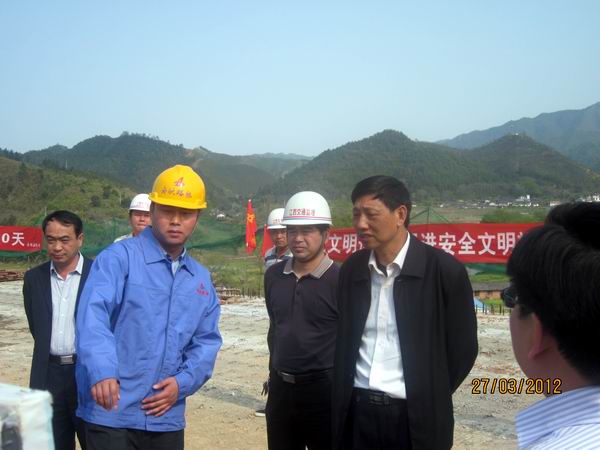 下午15:00,在龍南縣、全南縣領導、贛州高速公司總經理溫揚漢、大廣高速龍楊段項目辦主任劉偉勝等相關領導的陪同下,劉琮一行抵達我標江口大橋施工現場。一下車,劉琮便與我標項目經理羅權親切握手并交談。交談中,羅權向劉琮簡要匯報了我標整體施工情況。其間,劉琮就施工進度、資金調配、年底通車等問題細心詢問,羅權表示,在各級領導的關懷與指導下,我標在建員工一直發揚著敬業、開拓、團結、奉獻的安徽路橋精神,規范項目管理,緊跟施工進度,狠抓安全生產,嚴把質量控制關,積極做好工程建設,爭取在年底給贛州人民交出一份滿意的答卷,為贛州經濟發展貢獻綿薄之力。談及安徽路橋,劉琮高度贊揚,他指出透過大廣高速B1標的項目建設,足見安徽路橋在高速施工建設中管理規范,施工精細,質量過硬,是贛州高速建設中的守信用、保質量的放心企業,是贛州高速建設的好伙伴。