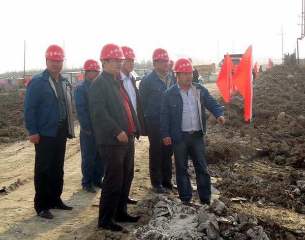 汪總一行首先對環湖北路項目進行了實地察看。項目經理王明禮向汪總一行匯報了項目當前的工作進展情況以及施工中遇到的困難等。汪總、孫總、劉總均對橋梁施工中的難題及高填方軟基路段的施工技術提出了指導性建議,并指出橋梁施工過程中一定要把好質量關安全關,高填方軟基處理一定要合理安排好土方的規范施工,合理調配機械設備,一定要按照標準化施工程序進行,保證施工質量,切實做好施工中的安全防護工作。