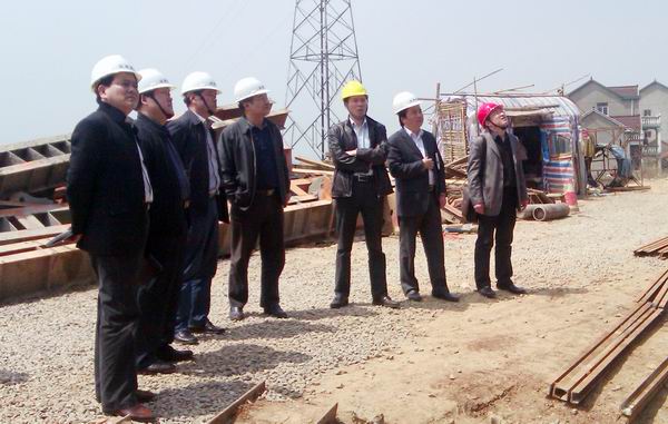 戴總一行首先來到宣貍改建L4標(biāo)北山河大橋施工現(xiàn)場,對北山河橋掛籃及主橋施工進(jìn)行了細(xì)致的了解,并聽取了L4標(biāo)項目經(jīng)理江仲明關(guān)于工程質(zhì)量與進(jìn)度、安全文明施工方面的匯報。隨后,在L5標(biāo)項目經(jīng)理劉冬的陪同下,戴總一行察看了L5標(biāo)全線的生產(chǎn)和進(jìn)度情況,對工程目前階段的重點(diǎn)和難點(diǎn)給予了建設(shè)性指導(dǎo)意見。