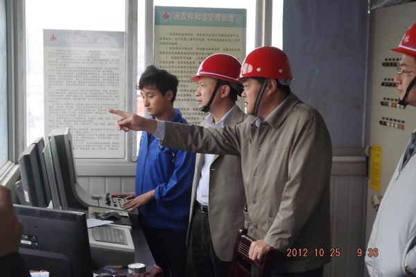 隨后,趙總一行來到該部瀝青拌合站后場,對該部瀝青場站的標準化建設給予了高度評價。趙總一行還來到瀝青拌合站操作室,饒有興趣的觀看了拌和站整個操作流程的視頻監控畫面,詳細了解了瀝青拌合站拌合的各個環節。