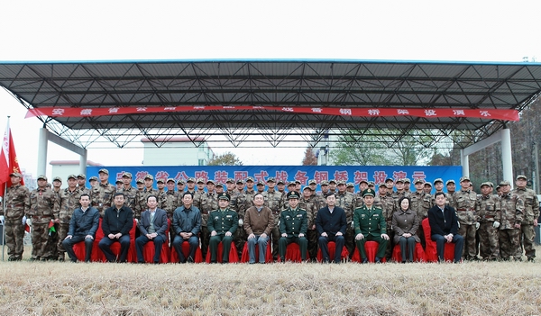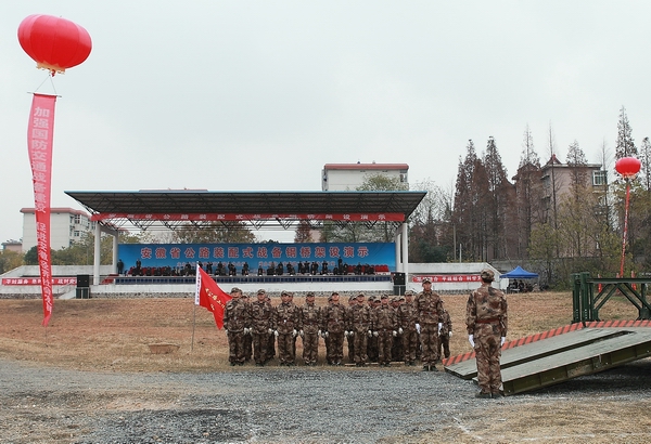 下午,在合肥警備區教導隊訓練場,紅旗招展,彩球飄揚。公司從各單位、各項目抽調的50名隊員經過為期一周的軍事化訓練,精神抖擻、整裝待發。15:00時,演示活動正式開始。隨著梅廳長一聲令下,隊員們高舉“安徽省公路工程保障大隊”旗幟,齊喊口號,跑步進入現場,開始架設。在架設的同時,進行了現場同期聲解說。短短30分鐘內,隊員們分工明確,技術熟練,配合默契。在沒有機械設備的情況下,依靠人工肩扛手抬,迅速完成了桁架、橋面板等搭設,將鋼橋推過河,隨后三輛炮車緩緩通過,進行裝備通載檢驗。至此,戰備鋼橋架設演示圓滿完成。演示活動結束后,領導們上橋檢閱,親切地接見、慰問了參演隊員,并合影留戀。