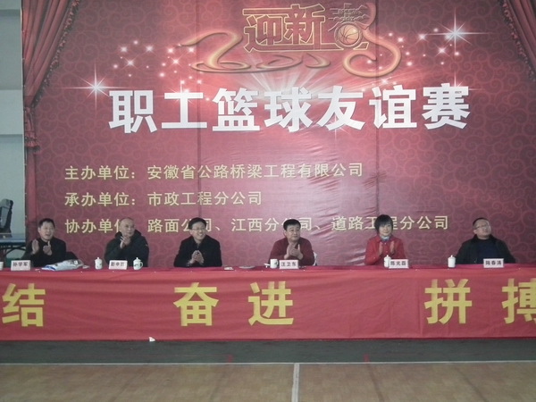 上午9:00,籃球賽開幕式正式開始。在嘹亮的《運動員入場曲》中,道路分公司、江西分公司、路面公司、市政分公司四支代表隊閃亮登場。公司工會主席胡運春和市政分公司經理李建成分別致辭,市政分公司運動員徐樂文代表全體運動員宣誓。公司黨委書記陳光磊宣布開幕。