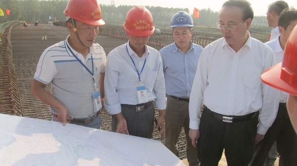 張祥安一行先后檢查了滁馬03標洪武路大橋和滁州南互通2#橋施工現場,對建設情況給予了高度評價。他指出,滁馬高速工期緊,難度大,取得這樣的成績很不容易,同時也要求施工單位在抓好工程建設的同時,抓實、抓好施工安全工作,確保萬無一失。最后,張祥安勉勵項目全體建設者們,要抓住機會,再接再厲,創造更好的業績。