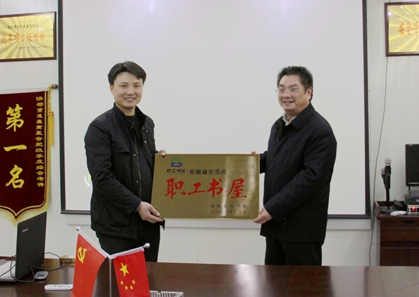 3月12日下午,安徽省總工會宣教部部長曾傳發、副部長陳重光蒞臨公司濟祁高速淮合段淮河特大橋路基01標項目部為“職工書屋”省級示范點授牌并贈書。集團工會副主席吳曉伍、女工委主任胡愛紅、公司工會主席胡運春陪同。