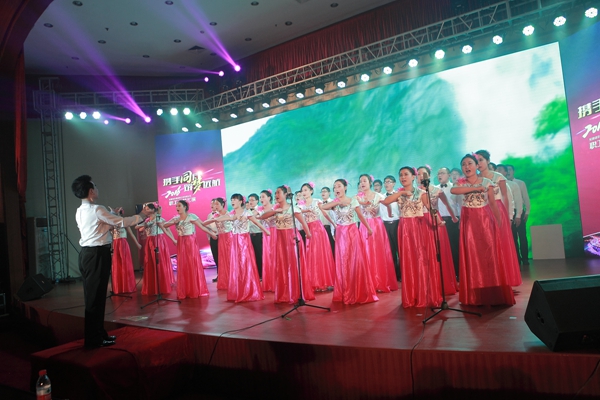 匯演結束后,集團和公司領導為獲獎節目頒獎,并和全體演員合影留念。