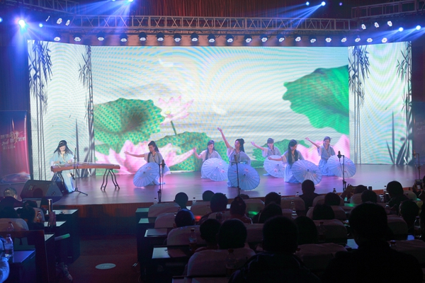 文藝匯演融聲樂、器樂、舞蹈、相聲、小品、朗誦、情景劇等多種藝術形式為一體,青春時尚元素與傳統元素完美結合,多角度、多視點營造出昂揚向上、全員同樂的節日氣氛。
