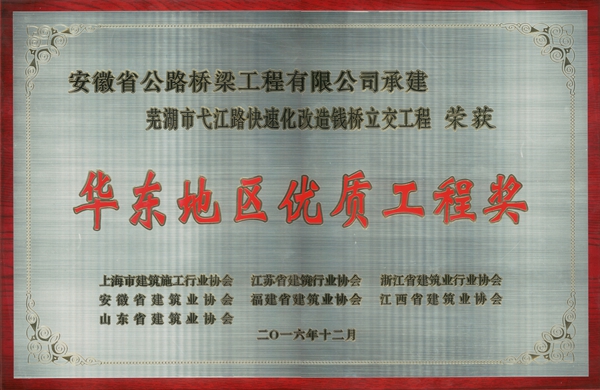 近日,由公司承建的G206公路(南崗-上派段)改建工程4標、蕪湖市弋江路快速化改造錢橋立交工程喜獲2016年度“華東地區優質工程獎”。