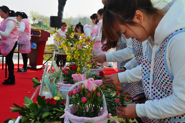 在主題為“最美的花兒獻給你”的花藝比賽中,來自兩家單位的十位女職工沉著冷靜,認真挑選花材,巧妙構思作品,優雅的動作,嫻熟的技藝,使得一個個設計新穎、造型亮麗的花藝作品呈現在觀眾面前,為三月的龍舒大地增添了幾許春色。在 “百花齊放”踩氣球友誼賽中,兩家單位女職工自由組合,隨著主持人的一聲令下,選手們一沖而上,互相踩破對手的氣球,比賽氣氛熱烈,充滿激情,吶喊聲、歡笑聲匯聚成一條快樂的河流。在團體跳繩比賽中,兩隊隊員齊心協力,熱情高漲,彩繩離地起,群鳳當空舞,盡情演繹著巾幗魅力,把現場氣氛推向高潮。